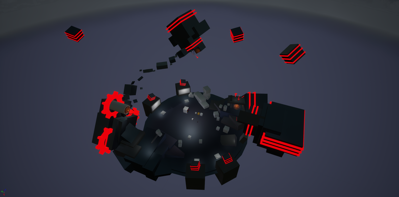 This is the final centre level. As you can see it is very high quality compared to the other images. In this final one there has been cogs added floating around and some other blocks and things, which really emphasises the gravity we have and the facts that it's low gravity. In addition to this you can see all the different teleporters when you really look around at everything, some of them are more hidden because the whole game is about being challenging and confusing so you go in one teleporter and then come out another somewhere completely different. In addition the last big change we had to build was a room that you teleport into before teleporting in to a level, this is because the level has to load up so the player will go to a loading screen in a small room underneath this level that just looks like a block so that when the player just loads in to the level they don't know that they went to another room first.
